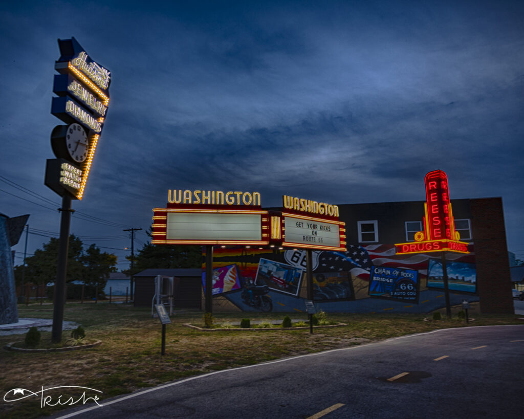 Our final stop for this leg of the trip was It’s Electric – Neon Sign Park in Granite City, Illinois. (ok, so we didn’t officially finish Illinois until evening). This is a new Route 66 feature (as of 2024) in support of the 100th anniversary next year.